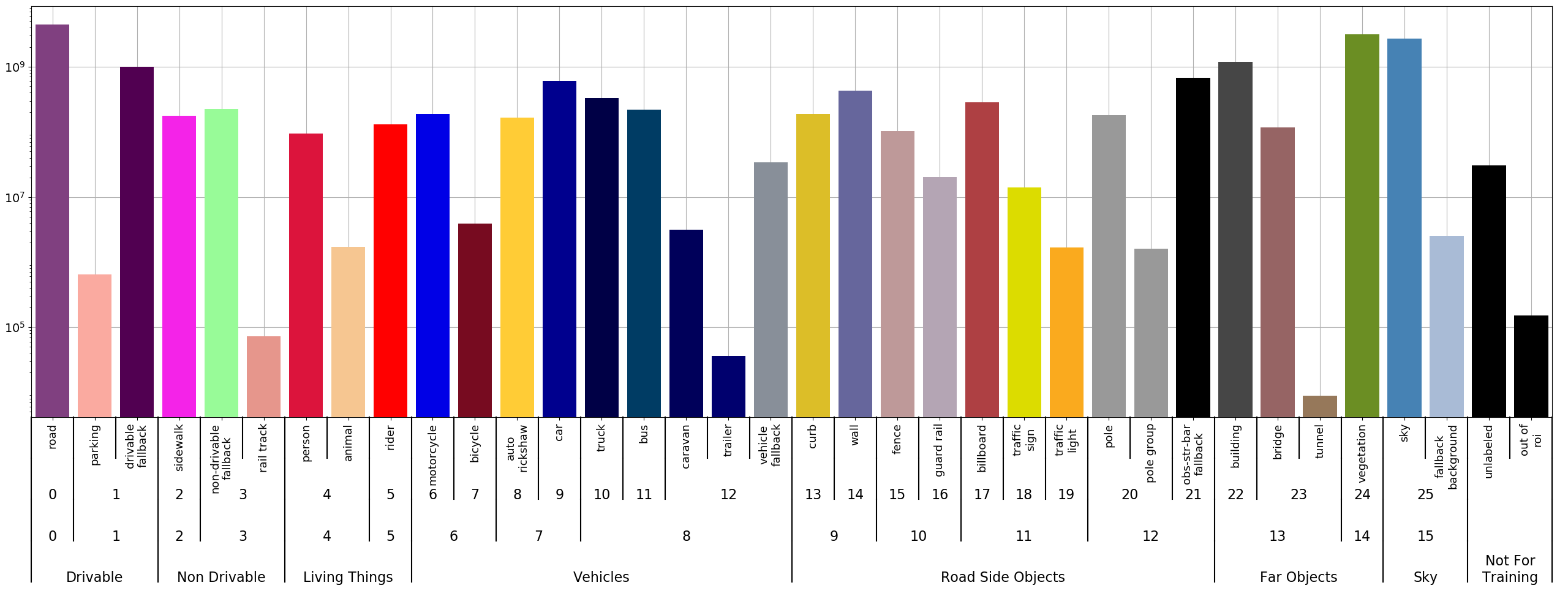 1. Pixel counts for each label in the y axis.